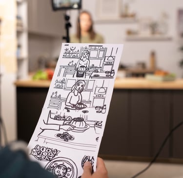 في [اسم الشركة]، نبدأ كل مشروع بفهم عميق لهدف العميل والرسالة المستهدفة، ونبني حولها خطة إخراجية تتضمن: